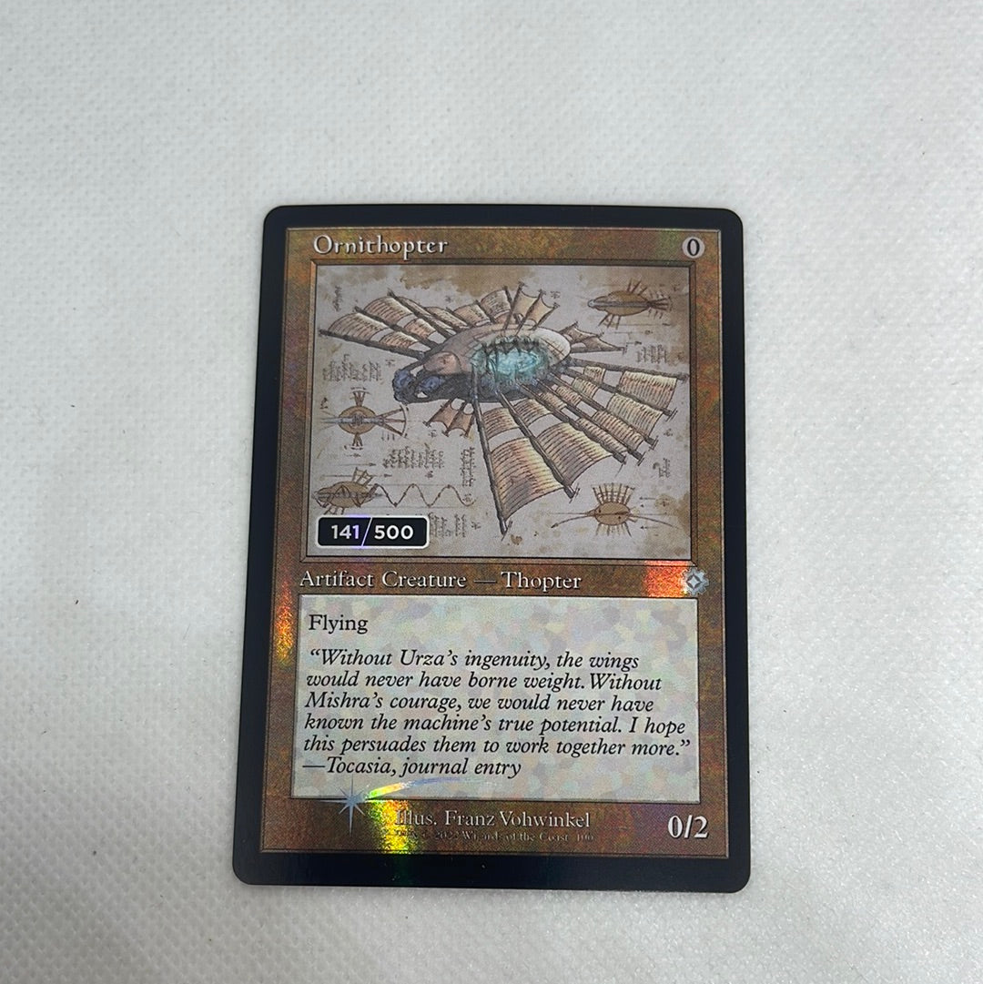 Ornithopter - The Brothers’ War Retro Frame Artifacts Schematic Serialized Foil. All cards in Lightly Played (LP) condition or better.