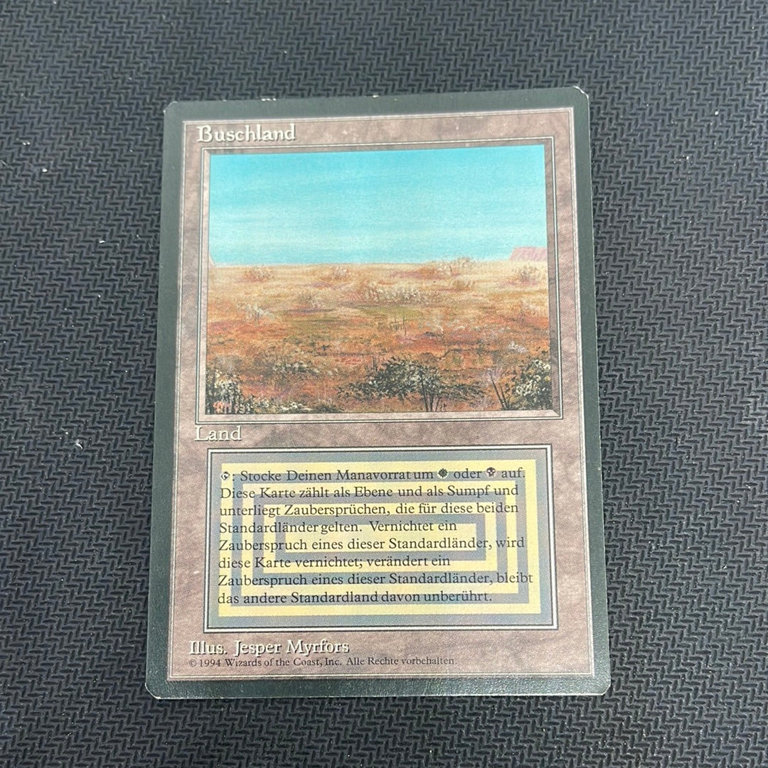 Scrubland from Revised. Note: this card is printed in German and is considered “foreign black bordered” or FBB.